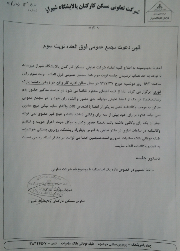 29 شهریور آخرین اخبار آگهی مجمع عادی بطور فوق العاده نوبت اول 1394/06/29 توسط مدیریت سایت 0 دیدگاه ادامه مطلب