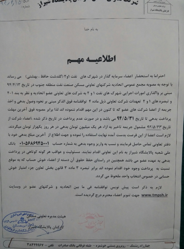 22 تیر آخرین اخبار اطلاعیه مهم قابل توجه سرمایه گذاران شهرک نفت 1394/04/22 توسط مدیریت سایت 0 دیدگاه ادامه مطلب